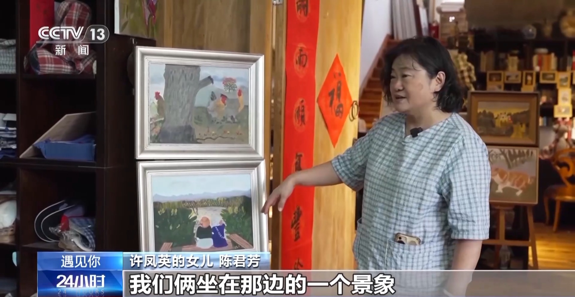 许凤英的女儿 陈君芳:我们俩坐在那边的一个景象,我妈妈把它画下来了。