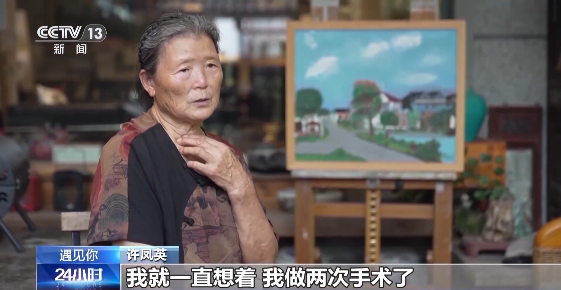 许凤英:我就一直想着,我做两次手术了,我的命肯定很短的。后来我画画,现在根本不想这个事情了。