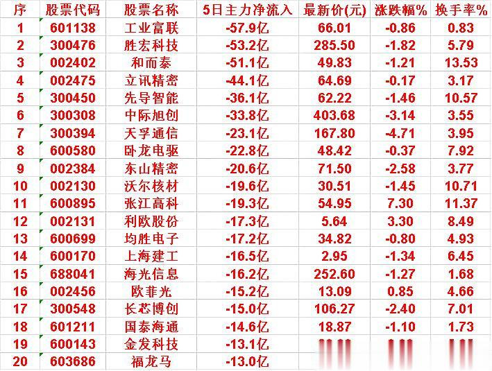 5日主力净流入